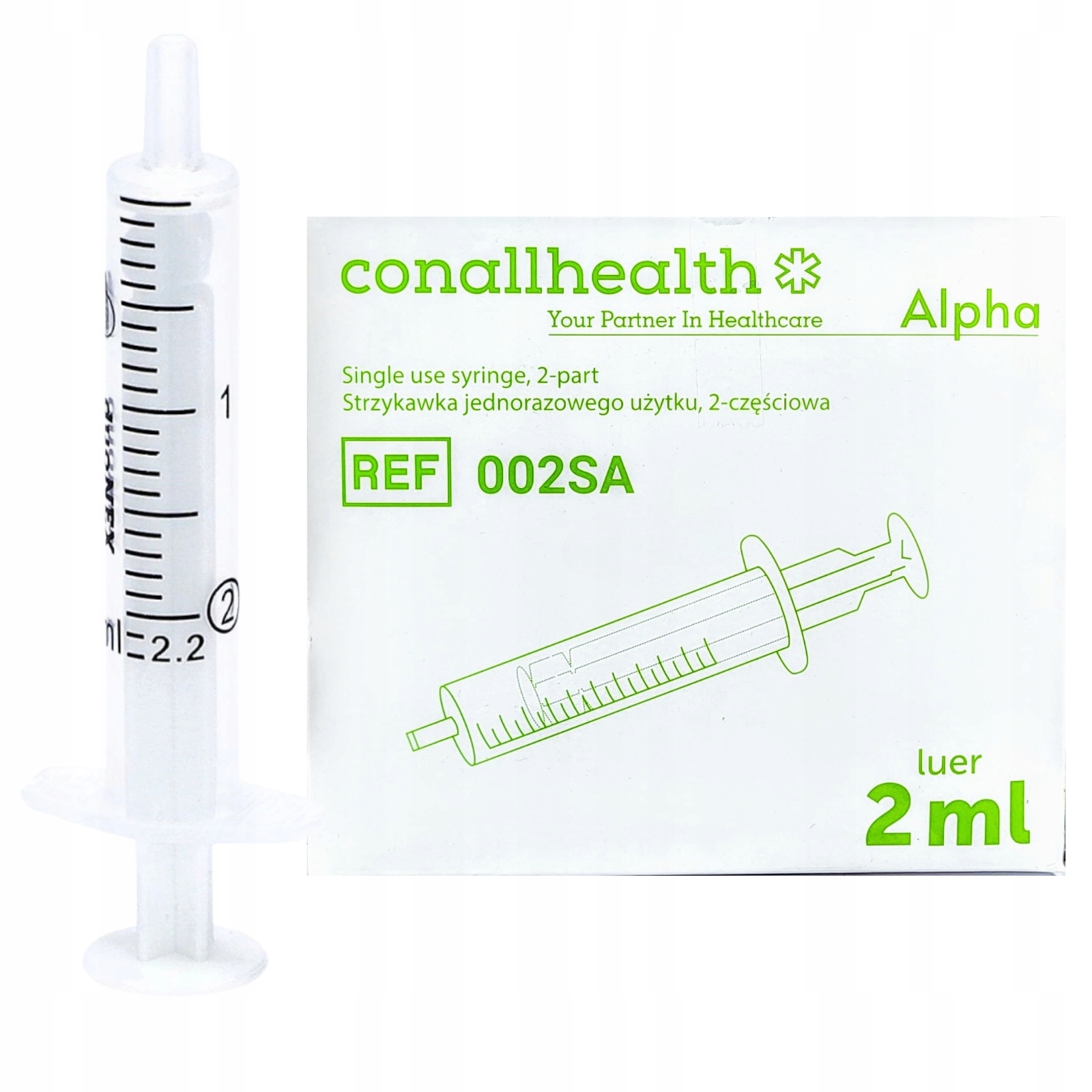 Strzykawki Zarys Conallhealth 2 ml – 100 szt. | Sterylne, 2-częściowe